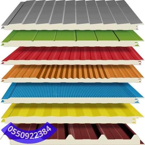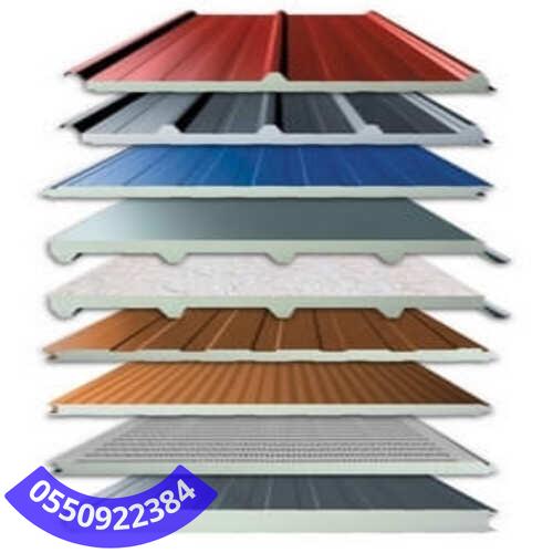 - ألواح صاج معزولة، يتراوح سمكها من 3، 5، 7،5 و 10 ويوجد من منها للحوائط والاسقف.