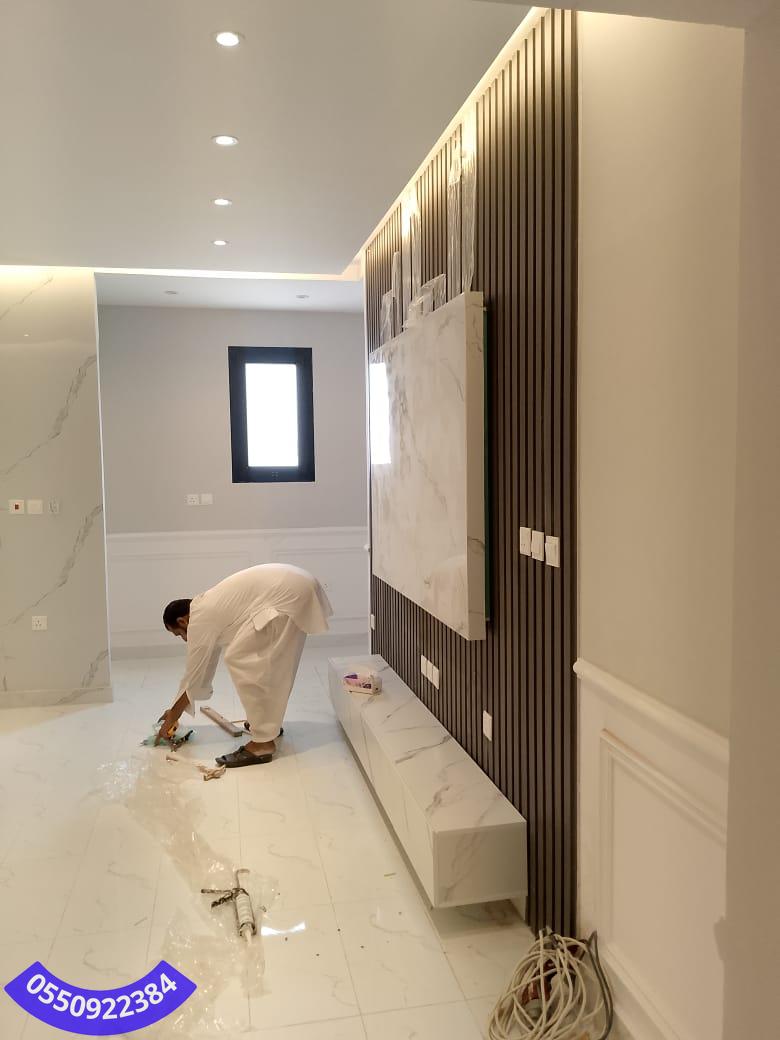 تركيب الأبواب، النوافذ، وحليات الزوايا (مثل حليات بلاستيكية لتغطية المفاصل).