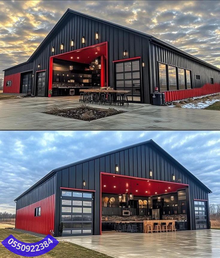 يمكن تصميمها لتكون ذات أقسام متعددة (تخزين – ورشة – مكاتب إدارية) في مبنى واحد متكامل.